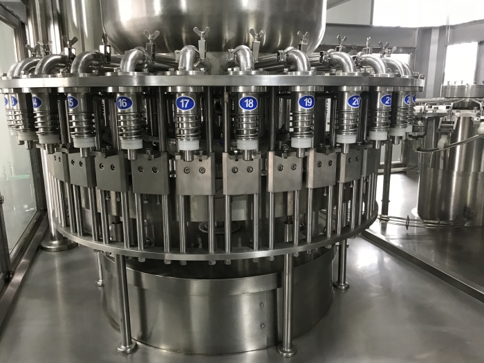 3.91视频网址入口机械压力91视频网址入口机压力91视频网址入口机在高于大气压的压力下进行91视频网址入口生产,可分为两种:一是储液罐内的压力等于瓶内压力,液体靠自身重量流入瓶内,称为等压91视频网址入口;二是储液罐内压力高于瓶内压力,液体靠压差流入瓶内,常用于高速生产线。压力91视频网址入口机适用于91视频网址入口含气液体,如啤酒、汽水、香槟等。91视频网址入口各种饮料的瓶子。饮料机械的流程基本相似。然而,由于饮料的性质不同,使用的91视频网址入口机和封盖机也不同。例如,在啤酒91视频网址入口生产线中,除了合适的91视频网址入口和封盖机之外,还增加了一台灭菌机。根据不同的盖子形状,封盖机选择相应的型号。装满空瓶的箱子叠放在托盘上,通过传送带送到托盘卸载机,然后托盘一个一个卸载。空瓶子从箱子中取出,通过传送带送到洗箱机,清洗干净,然后运送到装盒机,这样就可以在两者之间装入装有饮料的瓶子。从卸载机取出的空瓶通过另一条传送带送到洗瓶机进行消毒和清洗。经过检瓶机检查,符合清洗规格后,进入91视频网址入口机和压盖机。饮料由饮料机械91视频网址入口成瓶。装有饮料的瓶子由封盖机封盖和密封,并输送到贴标机进行贴标。贴标签后,送到包装机装盒,再送到托盘堆垛机堆在托盘上,送到仓库。